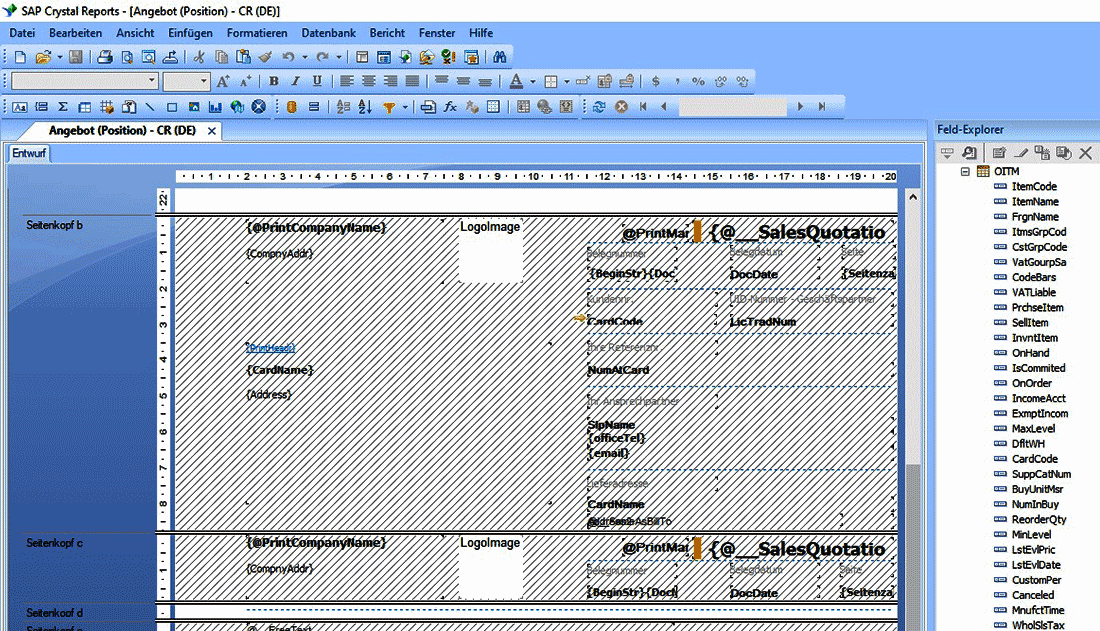 In SAP Business One ist eine Crystal Reports Lizenz integriert, welche für die Formularentwicklung und Berichterstellung verwendet werden kann. Es können pixelgenaue, formatierte Berichte erstellt und in einer integrierten Berichtsentwurfsumgebung angepasst werden. Crystal Reports kann nur in Kombination mit SAP Business One oder Add-Ons verwendet werden.